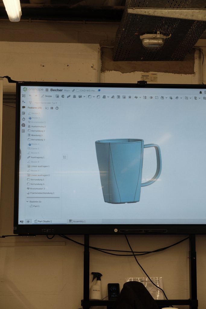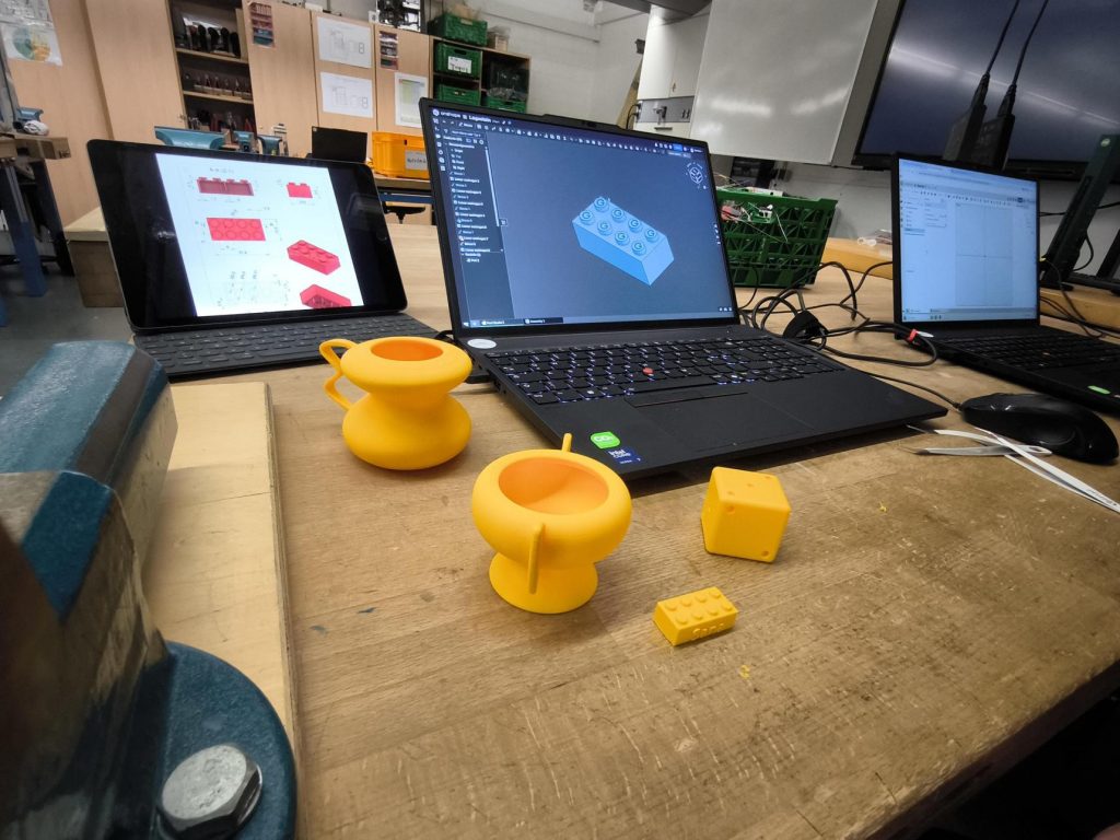 Im schuleigenen MakerSpace lernten die Schülerinnen und Schüler zunächst die Grundfunktionen des CAD-Programms Onshape kennen. Anschließend konnten sie ihre ersten eigenen Konstruktionen entwerfen und direkt vor Ort mit schuleigenen 3D-Druckern umsetzen. Aufbauend darauf beschäftigten sich die Teilnehmenden mit der Konstruktion komplexerer Körper, wie zum Beispiel Tassen und Vasen, die auf unterschiedlichen Druckern gefertigt wurden.